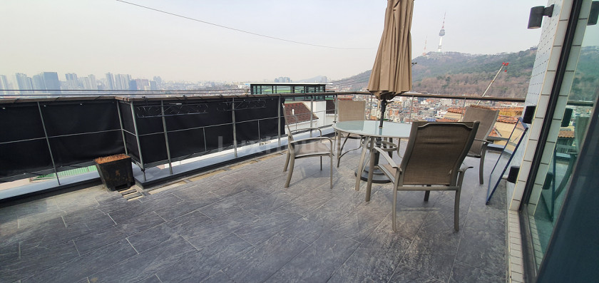 Roof top terrace with a mountain view