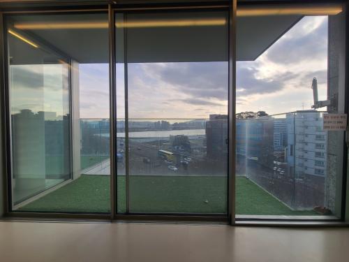 A south facing unit with a panoramic river view